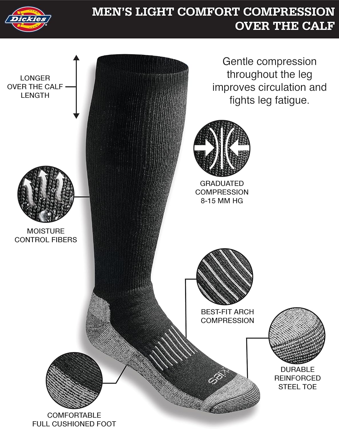 Men’s Light Compression Comfort Over-The-Calf Socks, Available in M-XXL (2, 4 Pairs), Shoe Size: 12-15